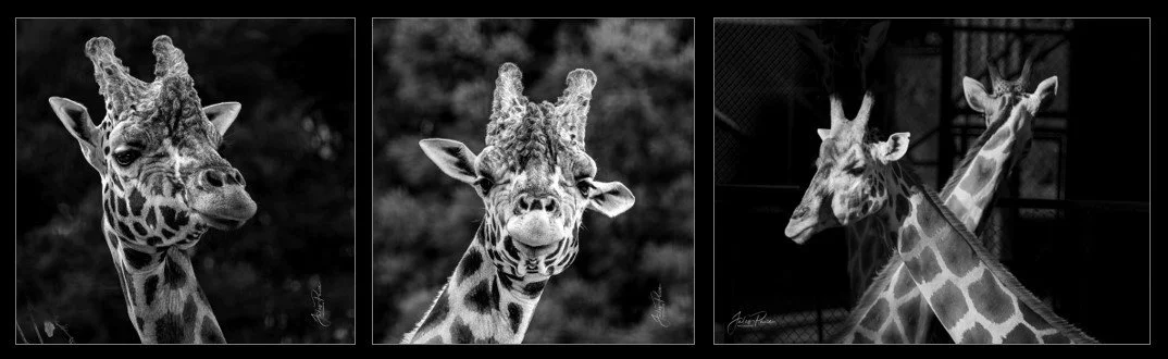 Image 7: Giraffe Triptych - Giraffe in B&W Hamilton & Auckland Zoos (Composition - Patterns & Repetition)