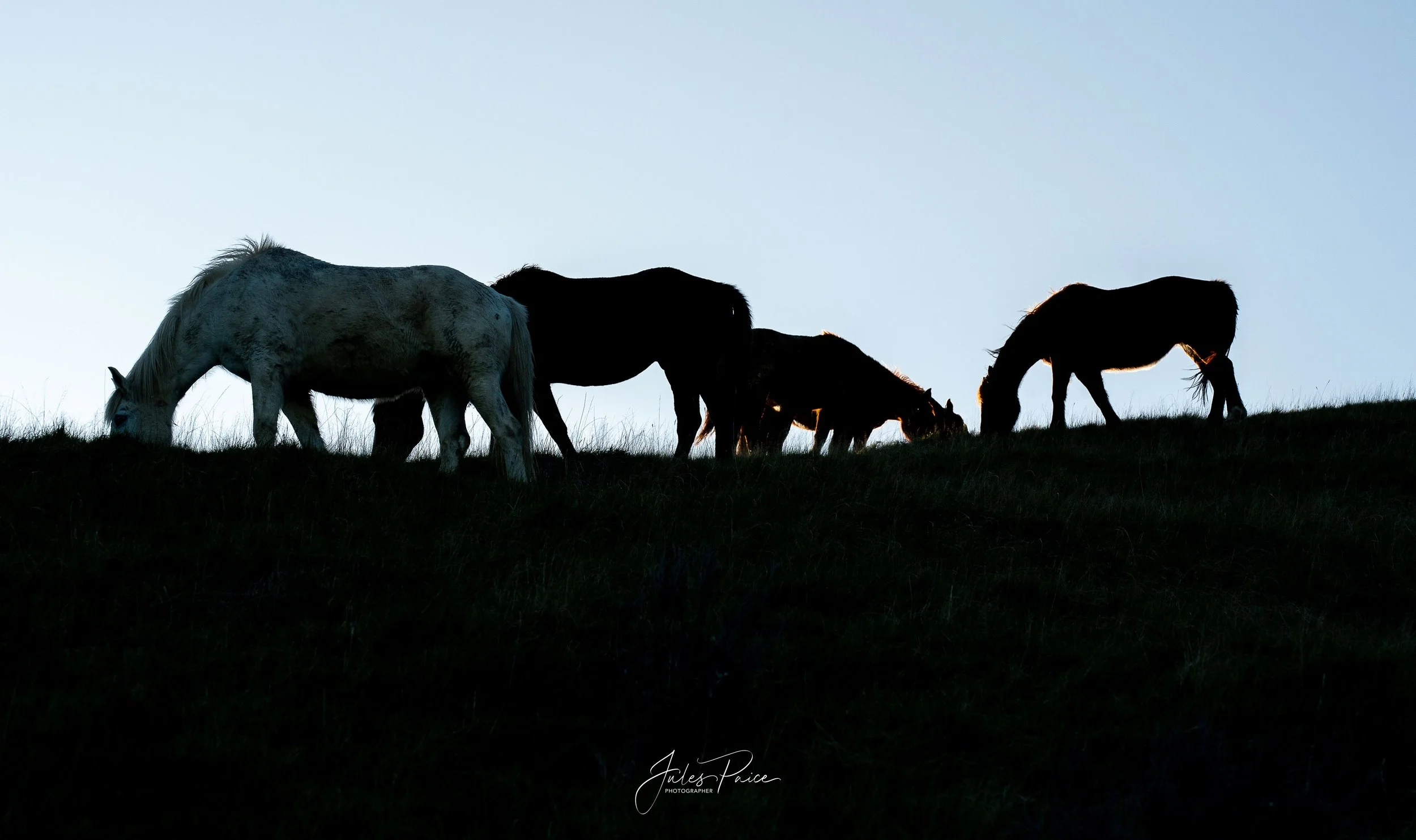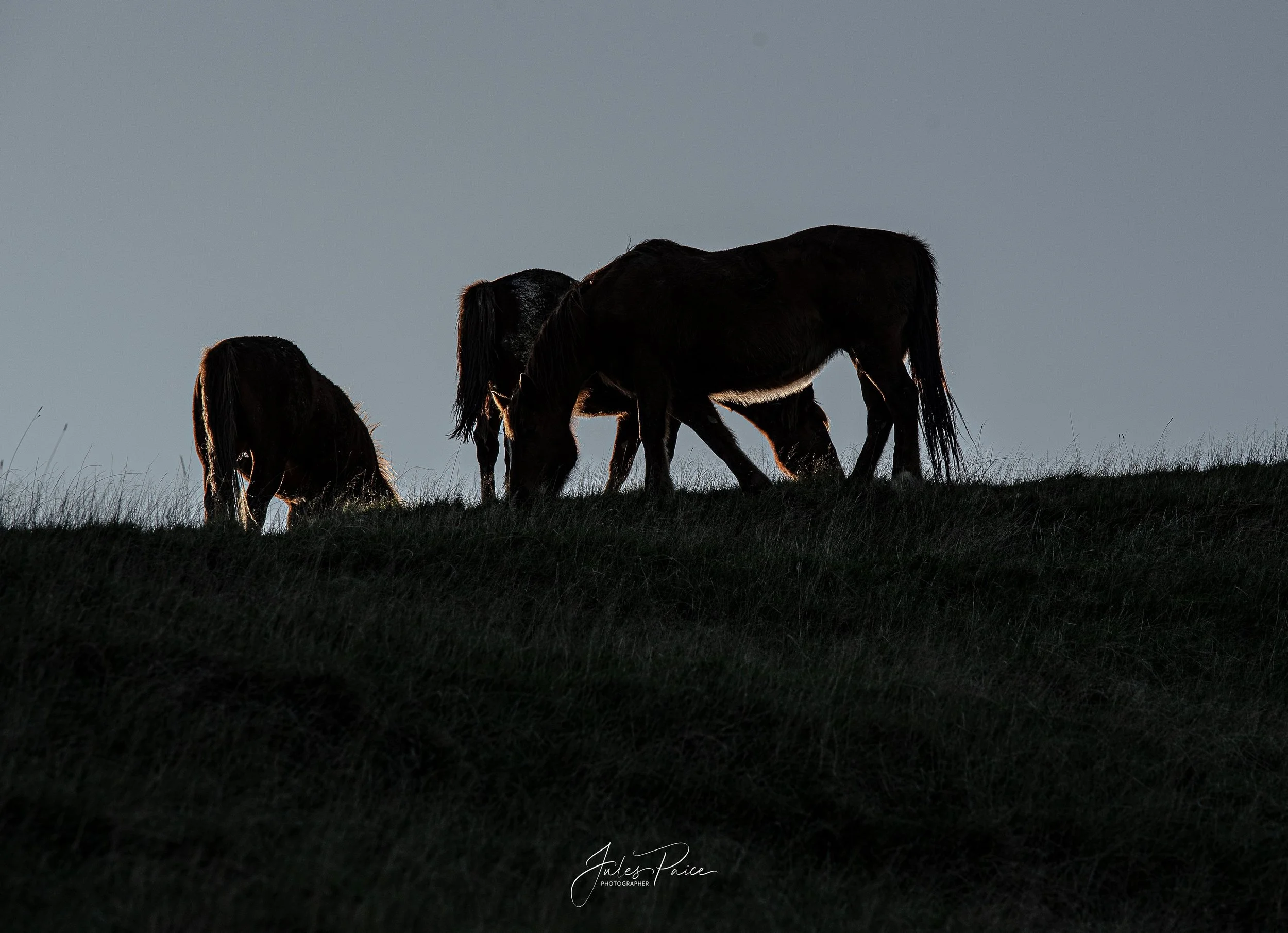 Image 8: Ponies - a group of 3 Arapawa ponies grazing in last light (Composition - Rule of odds)