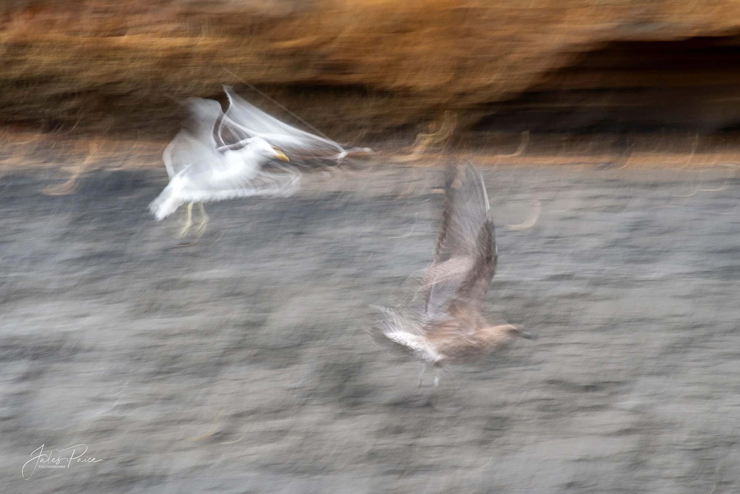 Image 21: Gulls-a-blur - ICM Seagulls at Back Beach (Shutter speed - Slow)