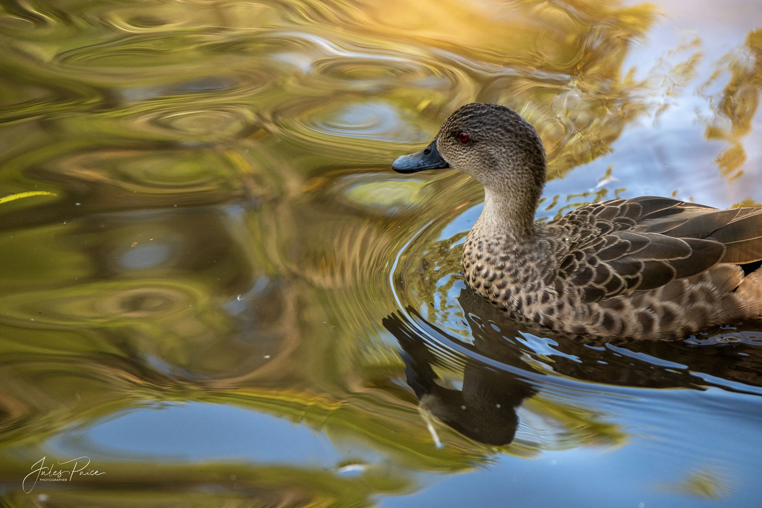 Image 10: Teal reflections - Teal cruising through a pond in early light (Composition - Symmetry & Reflection)