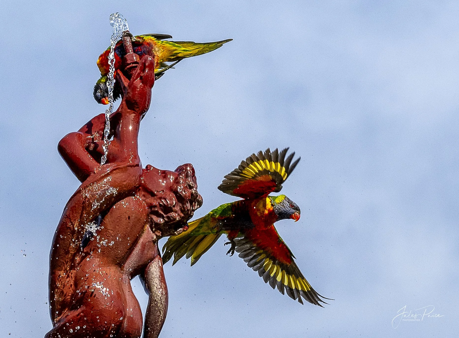 Image 20: Fountain fun - Lorikeets bathing at Adelaide Botanical Gardens (Shutter Speed - Fast)