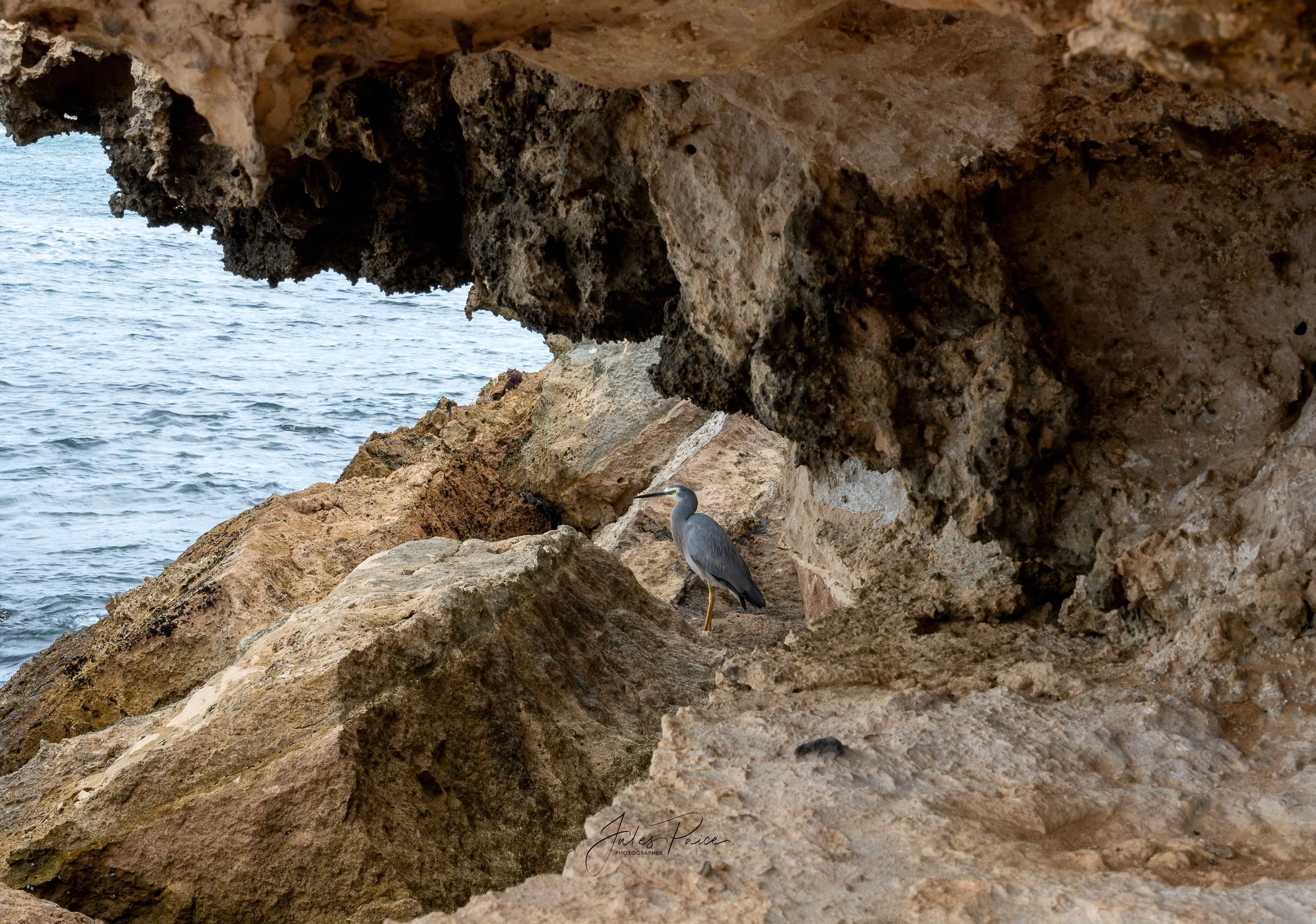 Image 6: Heron in a cave - White faced heron sheltering under an overhang, Yorke Peninsula SA (Composition - Natural Framing)